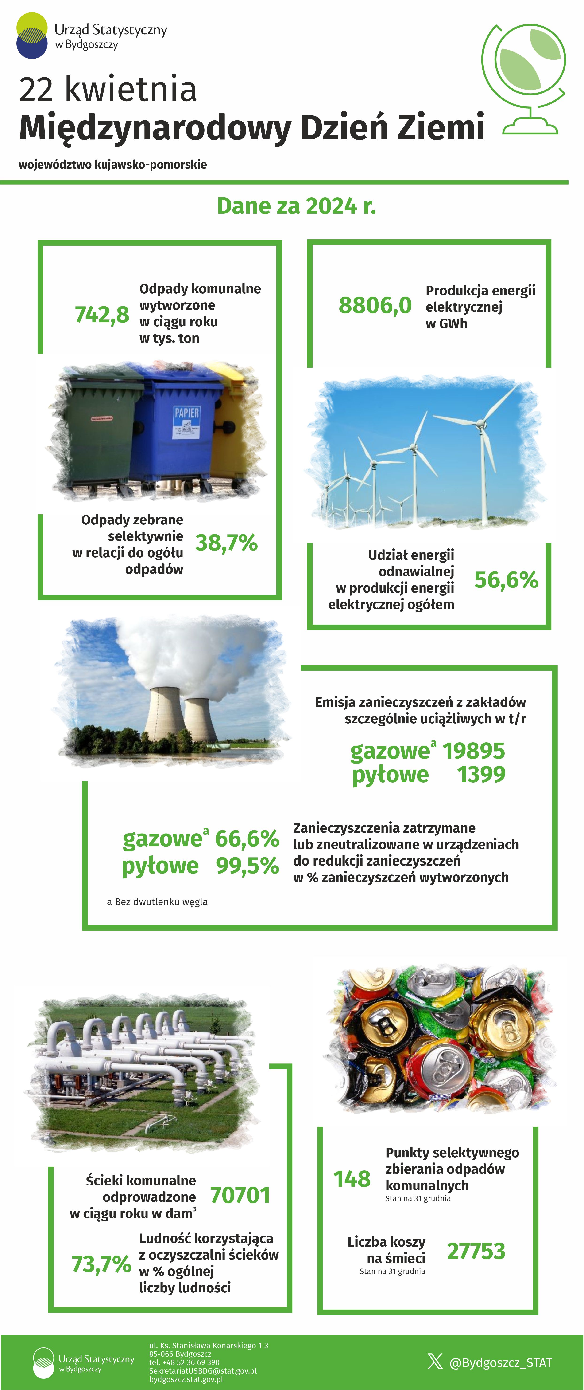 Międzynarodowy Dzień Ziemi (Infografika) A A A 21.04.2026 Pliki do pobrania Międzynarodowy Dzień Ziemi (Infografika) 1.71 MB Międzynarodowy Dzień Ziemi (Infografika) 0.31 MB Międzynarodowy Dzień Ziemi (Infografika) - dane w pliku Excel 0.02 MB