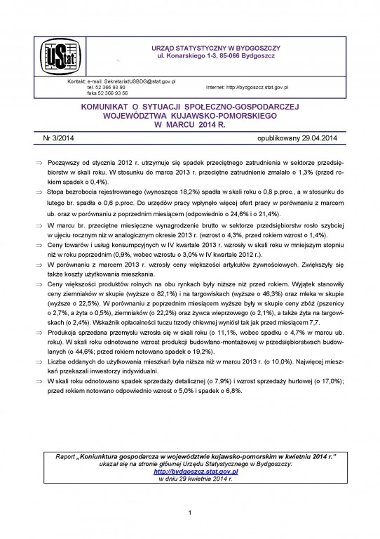 Komunikat o sytuacji społeczno-gospodarczej województwa kujawsko-pomorskiego (styczeń - grudzień 2009)
