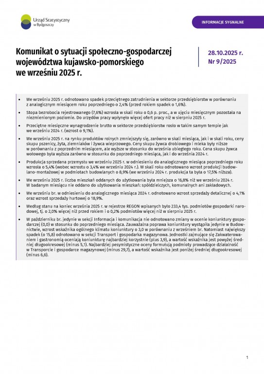 Komunikat o sytuacji społeczno-gospodarczej województwa kujawsko-pomorskiego - wrzesień 2025 r.