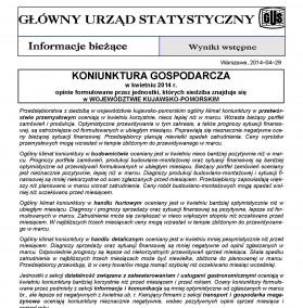 Informacja sygnalna prezentuje ogólny klimat koniunktury w przetwórstwie przemysłowym w województwie kujawsko-pomorskim w kwietniu 2014 r. Zawiera opinie formułowane przez jednostki, których siedziba znajduje się w województwie kujawsko-pomorskim.