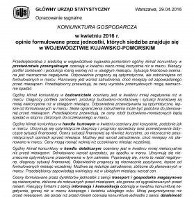 Koniunktura gospodarcza w województwie kujawsko-pomorskim w kwietniu 2016 r.